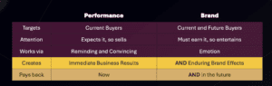 Challenge: balancing brand building and performance marketing