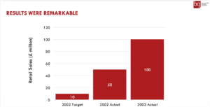 A combination of spare capacity, very low capital requirement, premium pricing and modest cost of goods allowed us to offer our retail customers good margins and heavily incentivise the sales team. In a business where ‘nothing happens until someone sells something’ there was tremendous power in a sales team who were desperate to sell our new product and customers who were desperate to back it!