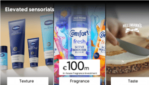 The third growth driver is sensorial. Fernandez highlights texture in facial care, fragrance in laundry and changing taste preferences in foods. His point is that as some functional gaps narrow, sensory experience becomes a bigger source of differentiation. He goes as far as saying that in laundry “there is no tough dirt anymore”, so elevated sensorials now matter more than ever. To support this push, Unilever is investing €100 million in its own fragrance house.